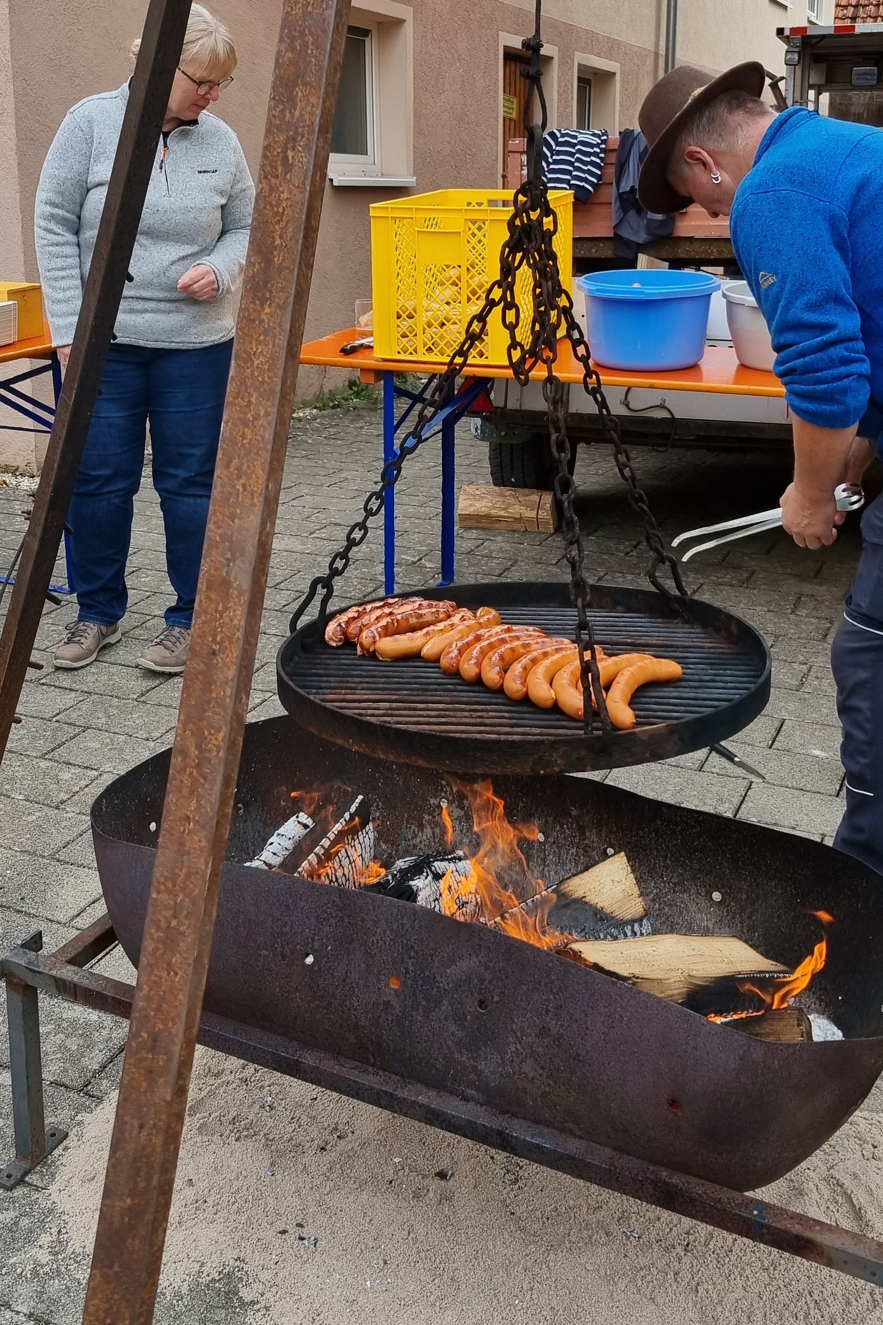 mit frischem Most aus Äpfeln von den umliegenden Rotfelder Streuobstwiesen. Dazu gab es frisch gebackenen Zwiebelkuchen und Obstkuchen vom Blech, hergestellt aus lokalen Zutaten, mit Mehl aus der Mühle Berneck Thomas Haag, Rahm aus Spielberg vom Hof Klußmann und den Eiern von freilaufenden Hühnern aus der Umgebung. Dazu gab es über Holzfeuer gebratene rote Würste von der Mezgerei Seeger aus Oberhaugstett und frisch gebackenen Brötchen von der Bäckerei Raisch aus Rohrdorf. Und so Mancher nimmt sich gern einen der immer leckeren Zwiebelkuchen mit nach Haus. Noch lokaler kann ein Fest nicht sein, das seit Jahren großen Zuspruch erfährt. Vieleicht liegt es auch an der heimelichen Atmosphäre im Rotfelder Flecken, mit Blick auf die bald 400 Jahre alte Dorfkirche, wo Kinder noch um den Kastanienbaum am Brunnen springen und Kastanien aufsammeln können, oder schon einmal kräftig an der Mahle drehen dürfen. Viele freiwillige Helfer machten es an diesem Tag möglich, daß sich die Gäste wohlfühlen. Diese Tradition der gelebten kulturellen Einheit ohne große Reden am Nationalfeieretag, aber mit vielen Gelegenheiten sich zu unterhalten und kennenzulernen, möchte der Verein auch in Zukunft weiter pflegen. Wer dabei mitmachen will, ist im Verein immer herzlich willkommen.